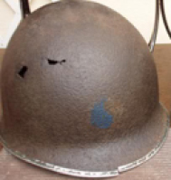 All 29th M1 Helmets should have the leather chin strap attached to the liner and be of a darker brown colour, reproduction chin straps are usually sold un-tanned and appear very bright and in some cases orange, this can be solved by applying brown or even black boot polish to the strap to take the reproduction edge off it.