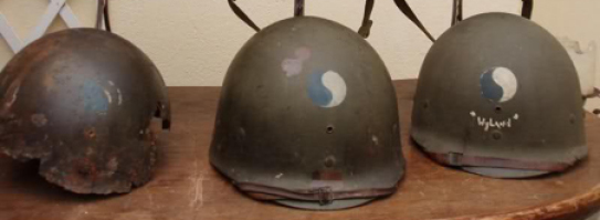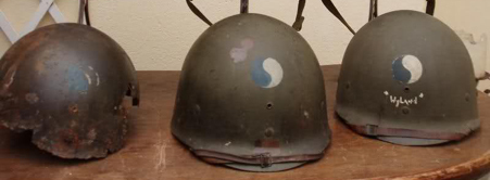 A theory on these helmets is that replacement GI’s who had not read the 29th regulations would paint their emblems in this place. The regulation position of the emblem is above the mid-level. Spray painted emblems have also been found on artefacts during digs of 110th Field artillery positions, so they are not unauthentic either, however the use of a decal or sticker is not authentic.