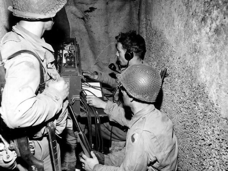 Through 1943 – 44 by far the most common M1 helmet and bale system used by the 29th was the front seam fixed bale. The Helmet would have the 29th emblem hand painted on the front varying in size from roughly 1.5” to 3”. The size variation looks to be unit dependant because in most photographs depicting more than 1 GI in the 29th we can see that all the helmets in the group have the same size emblem whether it’s the 1.5” or 3”. In C Company we adopt the 1.5” helmet emblem as we have found it to be most common amongst front line units.