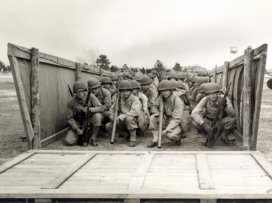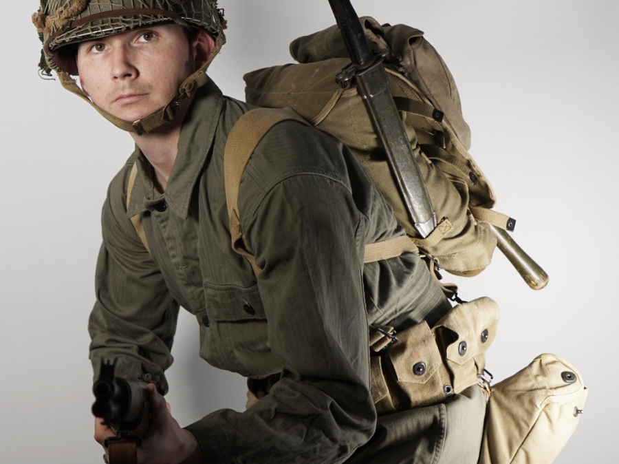 From photographs and film reels taken during the training at the Assault Training Center, we know that the 29th did not wear any identifying insignia on their uniforms. This is most likely due to the secretive nature of the D-Day invasion.