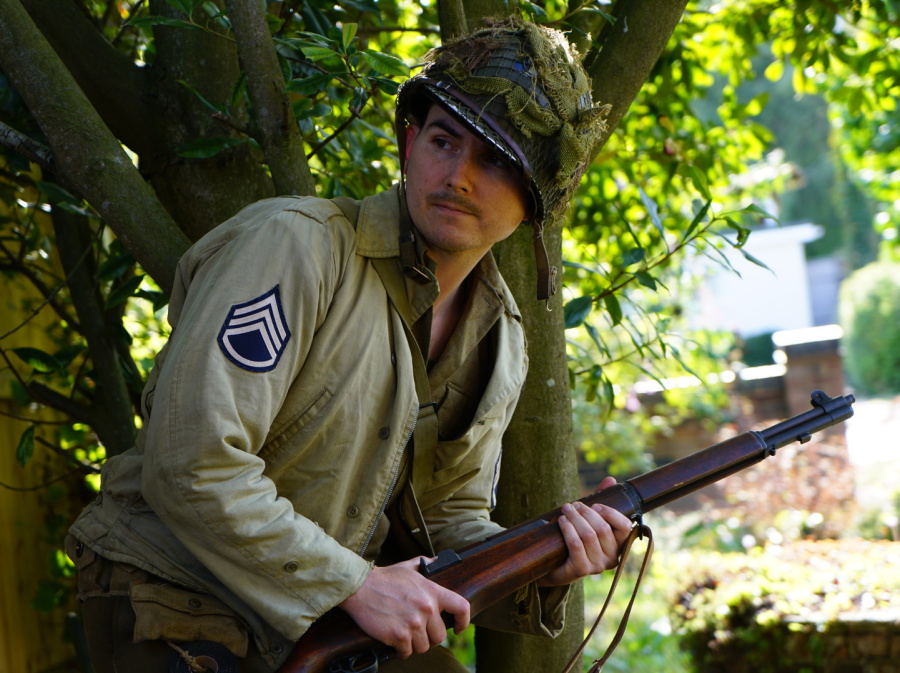 The route to St.Lo was long and costly for the 29th Division and it reflected in their appearance. During front line combat standards take a side line in favour of practicality. The constant fighting and patrols took their toll on the issued equipment, in one account from Bob Slaughter he mentions that his M41 Jacket had no buttons left on it by the time he came off the line. Other accounts from veterans tell of how they would turn their jackets inside out in an attempt at camo - the wool lining wouldnt reflect as much.